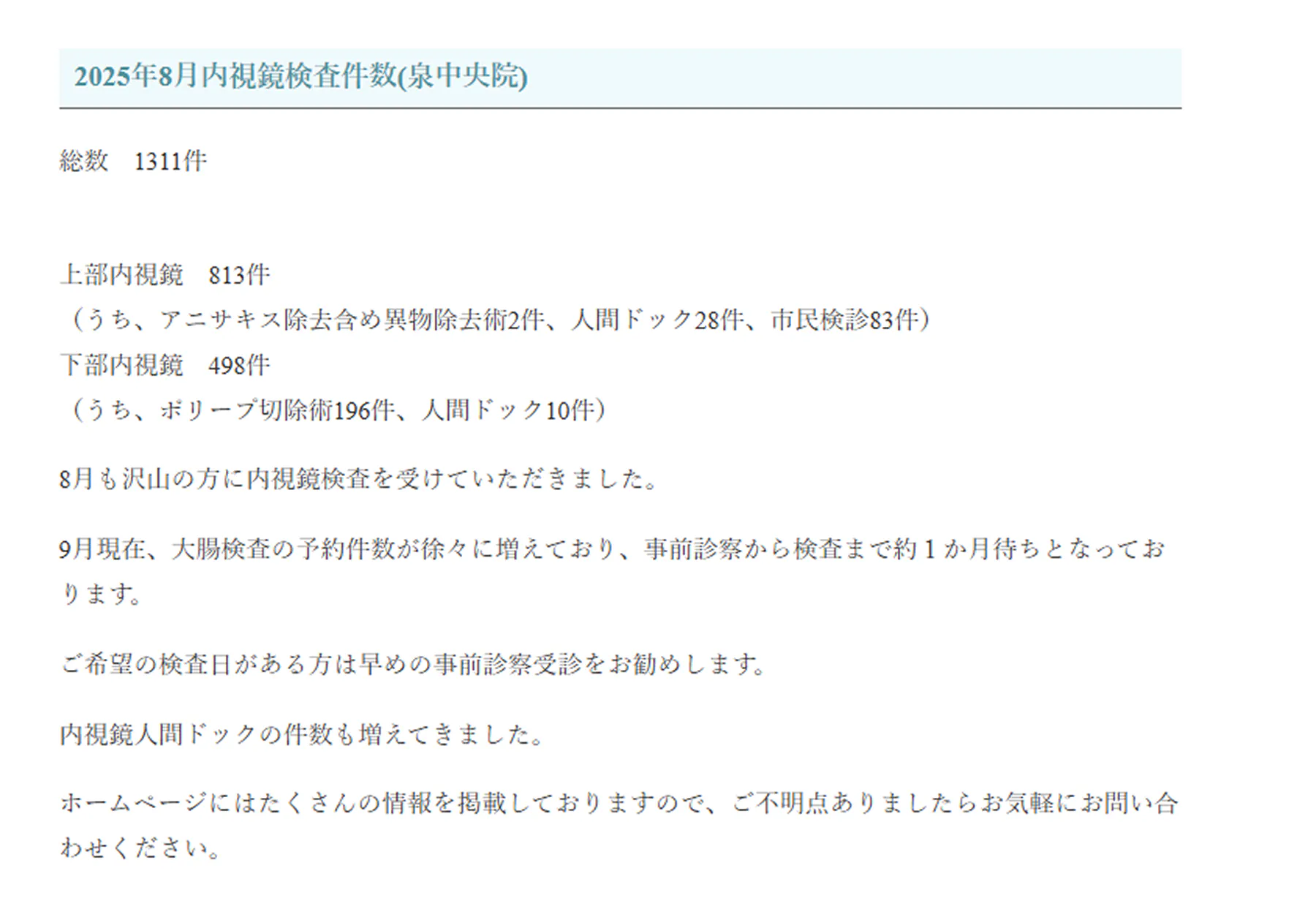 仙台消化器・内視鏡内科はじめのクリニック泉中央医院 より引用
